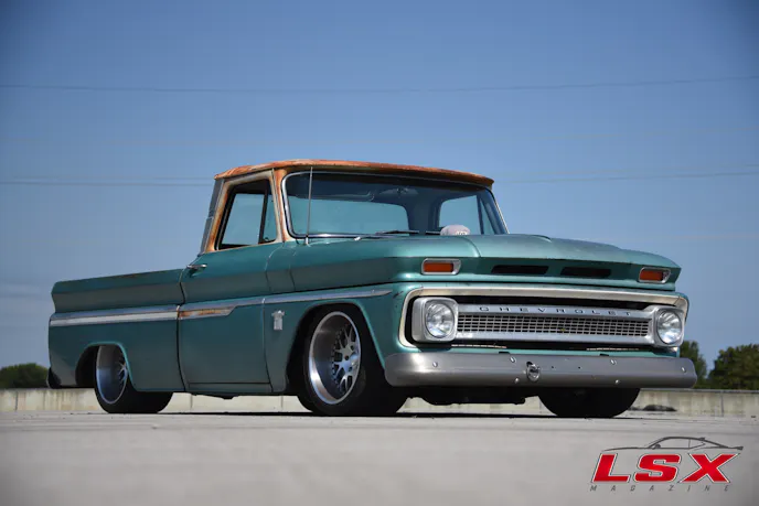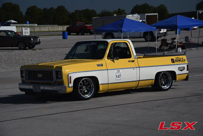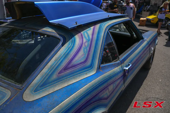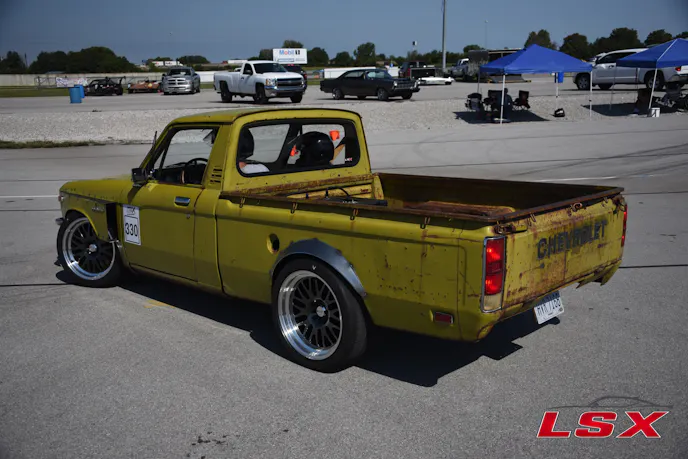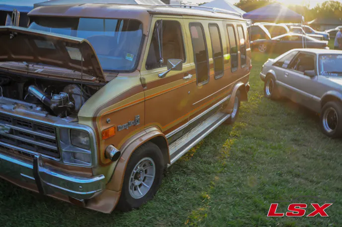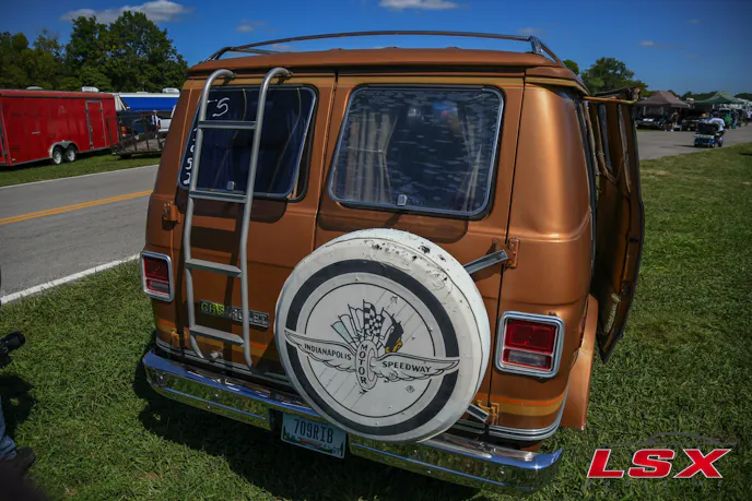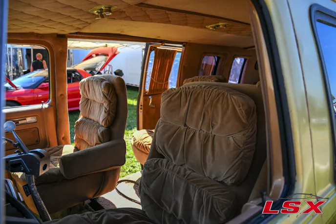 Joe Ivans, Pete Johnson, and Doug Johnson showed up for LS Fest in a van from Greenwood, Indiana — this 1978 G20 Custom van was initially built by LRP way back in ’78. The only thing that would give it away on any given day was the fender-exit-exhaust protruding on the driver’s side. The rustic time-capsule was complete with a plush ’70s interior and a gold, brown, tan, and orange paint scheme with the perfect degree of patina.