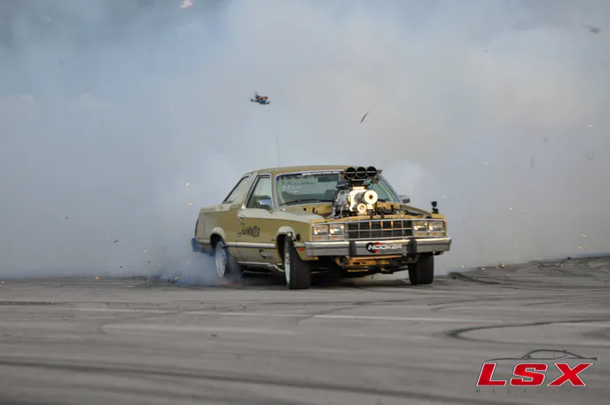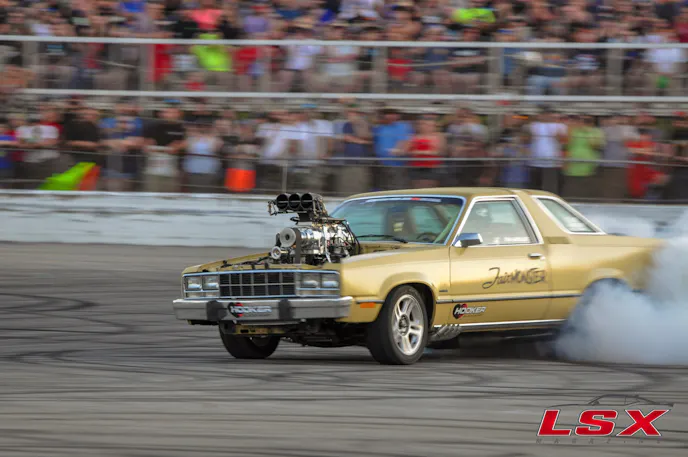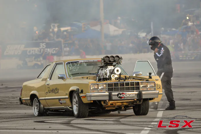 Want to know how to make an LS swap stand out in a sea of cars? Just ask Tim Grillot, Engineering Director of Holley Performance Products. He has the perfect formula that is sure to work on any vehicle out there. First, you take a car and insert an LS engine. Then you build a set of zoomie-style headers for it. Finally, you take a monstrous 14-71 supercharger and affix it to the top of the engine. And if this approach doesn’t get enough attention, enter the burnout competition at LS Fest and melt the tires off with wheel speeds of over 200 miles per hour.