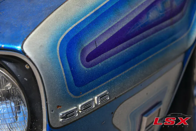 Jon’s father bought the now super-rare 1968 Camaro SS 396, which received the custom paint job in 1971. Matt, the previous owner, went through some hard times and lost interest in the car, leaving it outside. Nevada is known for harsh conditions, and while rust is not a factor, the sun is. The years of exposure from the fireball in the sky quickly took a toll on the trendy paint scheme. But we love a good patina, and this one is not good…it’s great.