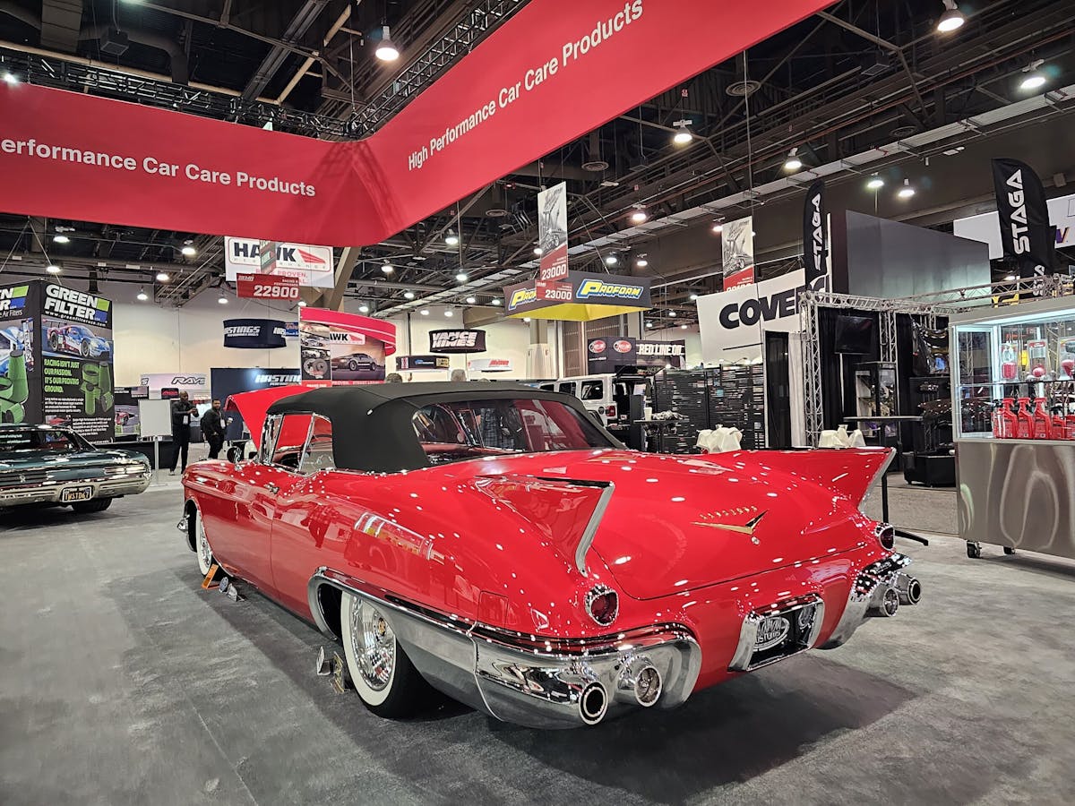 This 1957 Cadillac Eldorado Biarritz convertible, built by Mike Goldman Customs out of Meridian, Mississippi, was one of our favorites from SEMA 2023. Not only was the car meticulous and impeccably presented, but a powerful secret lay under her silky red bonnet. We were keen to find out her backstory so we gave a call to the maestro himself, Mike Goldman and he filled us in on the 411 of the car.