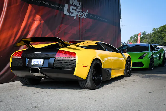 Currently, the engine is running the stock computer with a harness from PSI. A set of Siemens Deka 60Lb injectors, Walbro 340 fuel pump, and Corvette regulator feed the second iteration of this bull. Randy Prevatt in Tulsa, Oklahoma tuned the car in its current state. As it stands, Dustin built the car to be as refined but reasonable as possible. He eschewed a big, lumpy camshaft for a smooth, stealthy idle and runs the spent fumes through a set of short-tube headers feeding into a Murcielago Capristo exhaust system which further routes them through the single exit hole in the rear fascia. Even looking at the engine bay, Dustin implemented many of the cues from the Murci’s original design to help the LS-based engine blend into its Italian surroundings.
