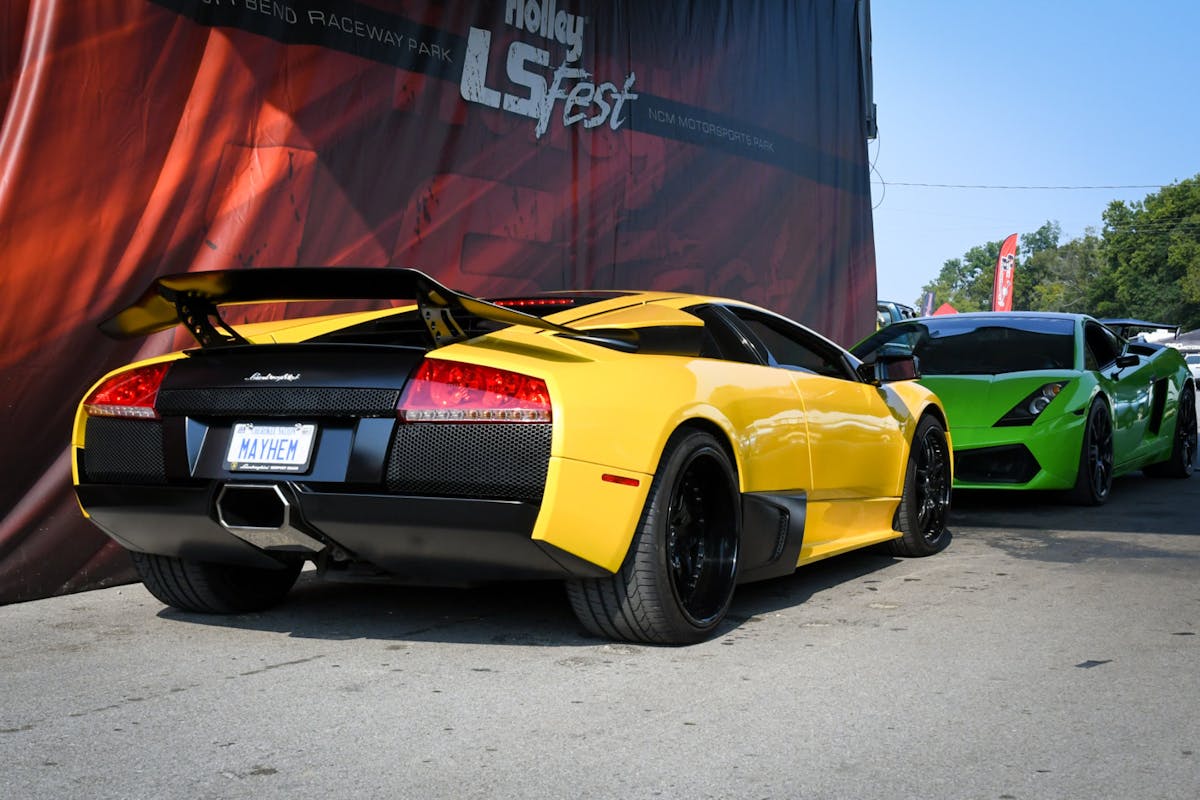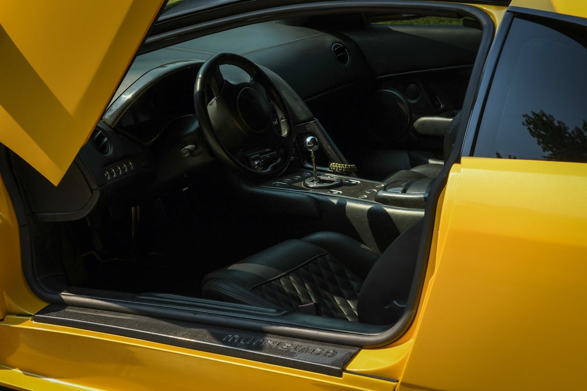 It’s not as if a Lamborghini Murcielago needs any help garnering attention, but just to be sure, Dustin had Robbie Haynes at R&J body shop in Tahlequah, Oklahoma re-paint the car its factory Giallo Orion, eye-searing yellow hue. He also added an LP670 SuperVeloce front bumper and front fenders and the mirrors are upgraded to the newer LP640 status. That stylish and silky-smooth rear wing is a Liberty Walk unit modified to fit on the exhaust cover.