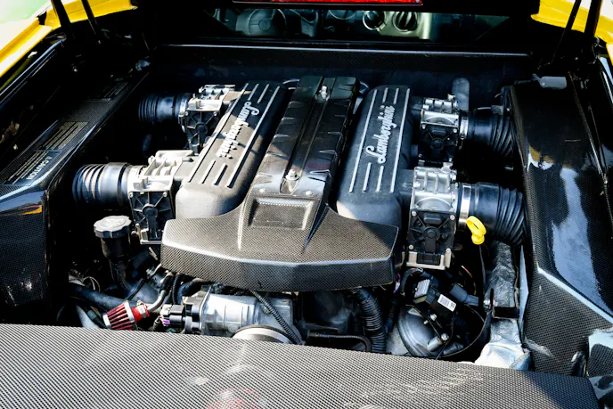Before leaving, the car was celebrated by employees and admirers of the Lamborghini stable as the 2,000th Murcielago to leave the plant, the car’s VIN documenting this fact. There are photos of the car with an LP640 and a Gallardo, surrounded by 500 Lamborghini employees all celebrating the car’s dual-century significance. The car came to the U.S. and was first sold in California, and then bought back as a “lemon.” The car’s second owner lived in New Jersey, and unlike the Matador so many years prior, he subsequently killed the car with only 12,240 miles on the odometer. The car was scrapped for its many valuable parts and then wound up on the online auction site, where Dustin acquired it.