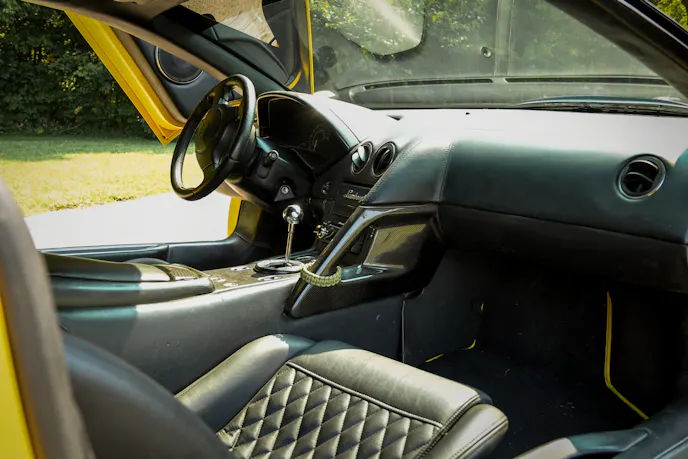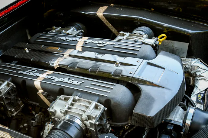 Currently, the engine is running the stock computer with a harness from PSI. A set of Siemens Deka 60Lb injectors, Walbro 340 fuel pump, and Corvette regulator feed the second iteration of this bull. Randy Prevatt in Tulsa, Oklahoma tuned the car in its current state. As it stands, Dustin built the car to be as refined but reasonable as possible. He eschewed a big, lumpy camshaft for a smooth, stealthy idle and runs the spent fumes through a set of short-tube headers feeding into a Murcielago Capristo exhaust system which further routes them through the single exit hole in the rear fascia. Even looking at the engine bay, Dustin implemented many of the cues from the Murci’s original design to help the LS-based engine blend into its Italian surroundings.