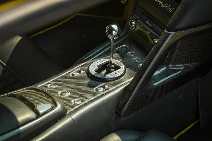 On the inside, black leather has been updated to an LP640 interior with carbon accents throughout. The original gauge cluster was sent to Dakota Digital as a special project for the Murcielago. The folks at Dakota Digital re-engineered the cluster with their HXD digital system which is now designed to work in any Murcielago.
