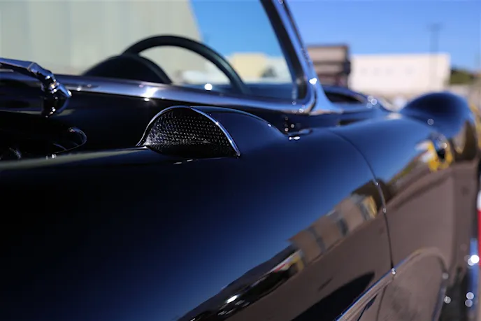 Another interesting feature of the Corvette are the small gills before the doors near the windshield. They actually work well with the subtle chrome fixtures Gary has around the car. With enough curves and swooping lines to keep your eyes darting about, it gives the car more flair, separating itself from other first-generation Corvettes.