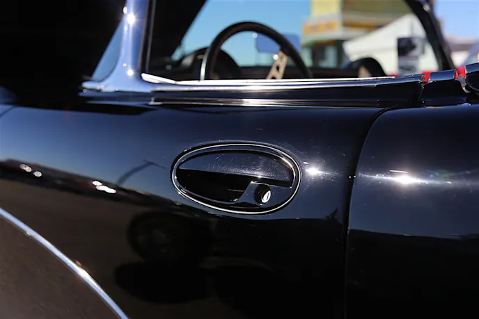 The door handles stem from a fifth-generation C5 Corvette and the rear quarters were widened 3 1/2 inches on both sides to fit a wider set of wheels. “It took us twice to make these right,” Gary said. “We shaved the emblem off of the rear, and also removed the bumperettes out back, letting the gorgeous black paint really shine all on its own without all of the chrome in the way.”