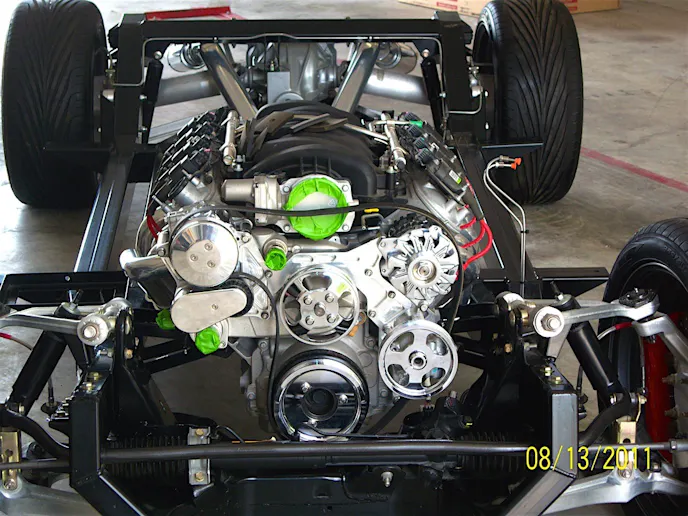 One look at the engine bay and one will realize there is something serious going on under this black beauty. The engine is a Corvette LS7 7.0-liter V8, which is mated to a Tremec 6060 six-speed manual transmission and a Dana posi with 3.73 gears, which keeps the power tamed in the rear.