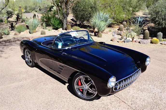 There is an extensive amount of body mods all the way around this Corvette, which earned it the Builders Choice Award at the Goodguys 5th Spring Nationals in Scottsdale. The PPG Black paint simply dazzles on this Corvette, contrasted with PPG Metallic Silver coves, and a clearcoat that makes the car shimmer.