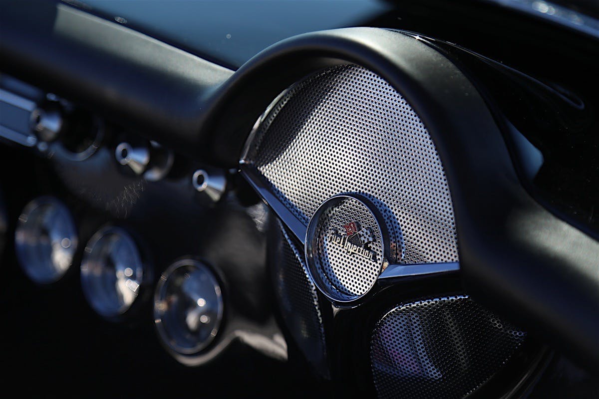 The door handles stem from a fifth-generation C5 Corvette and the rear quarters were widened 3 1/2 inches on both sides to fit a wider set of wheels. “It took us twice to make these right,” Gary said. “We shaved the emblem off of the rear, and also removed the bumperettes out back, letting the gorgeous black paint really shine all on its own without all of the chrome in the way.”