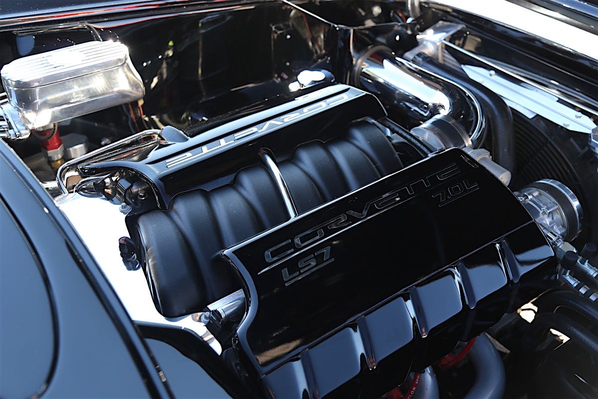One look at the engine bay and one will realize there is something serious going on under this black beauty. The engine is a Corvette LS7 7.0-liter V8, which is mated to a Tremec 6060 six-speed manual transmission and a Dana posi with 3.73 gears, which keeps the power tamed in the rear.