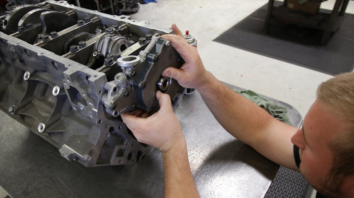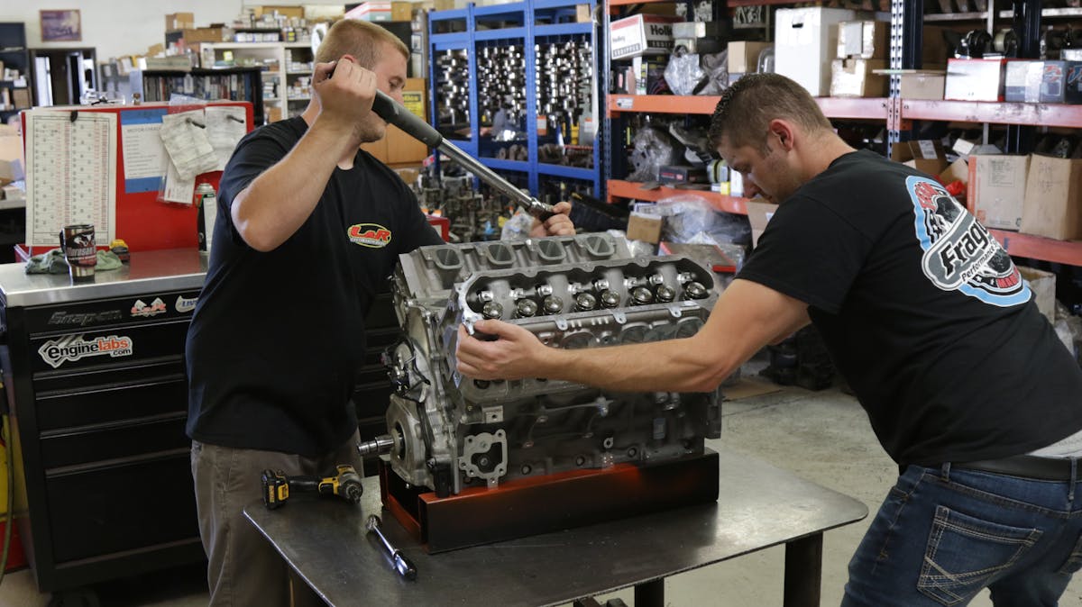 Since the stock crank was already forged, there was no sense in replacing it, so we packed up our rotating assembly and headed over to L&R Engine out of Santa Fe Springs, California for balancing and some minor machine work. Derek had our short-block balanced and bolted back together in no time. All of our piston rings, bearings, and gaskets were all provided by the guys over at Mahle.