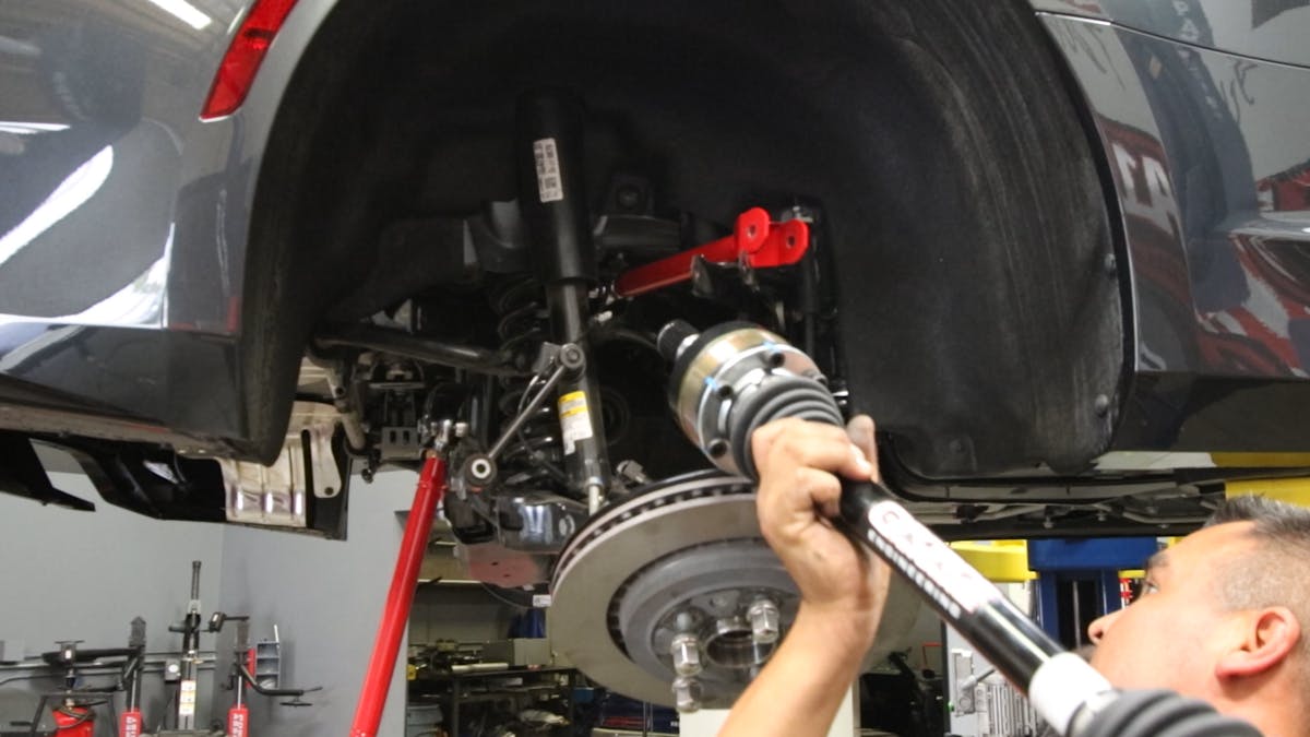 While we are planning on making some steam, the 1,500-horsepower rating of the Outlaw half-shafts almost doubles our projections for what the car will make. On top of it all, GForce provides a lifetime warranty on its components, not only demonstrating just how confident they are in the strength of the parts but ensuring us a lifetime of hassle-free operation. The aluminum driveshaft ditches the bulky joints in favor of a splined slip joint that is not only stronger but lighter as well. The half-shafts use a machined aerospace-grade billet alloy for both the CV joints and axle bar making them much stronger than the stockers. One-piece CNC machined billet steel inner and outer stubs are also used making these axles some of the toughest in the business.