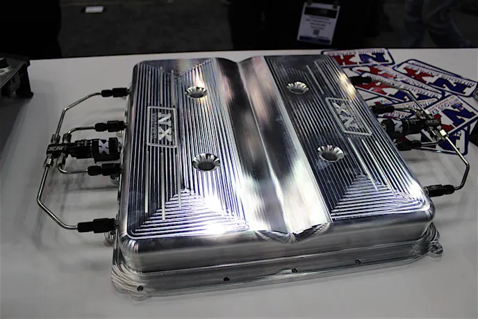 The lid that was on display was plumbed for use with a water/methanol kit but Abney tells us that nitrous nozzles can just as easily take their place.