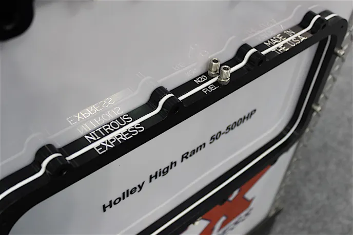 The same goes for their perimeter spray plate for the immensely popular Holley Hi-Ram intake, which sprays above each port, “[resulting] in sort of direct-port performance, but with a plate you can bolt in, in 10 minutes,” according to Abney.