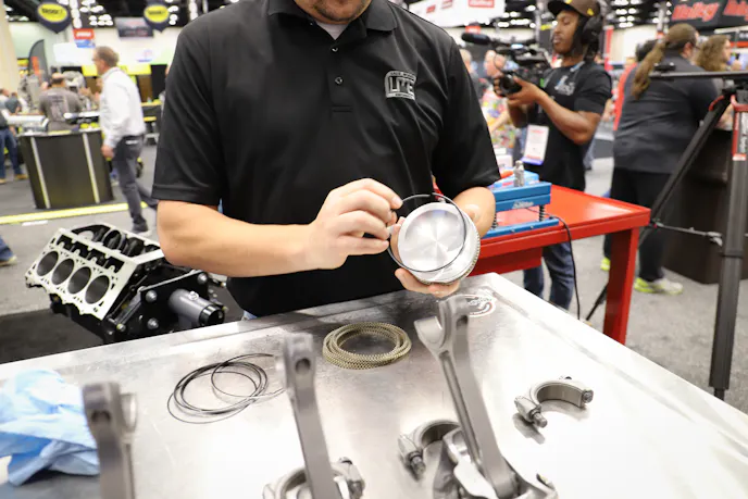 EngineLabs is giving away a wicked, supercharged LS engine if you haven’t heard. While at the 2021 PRI show, the gang at Late Model Engines (LME) went to work on a 427 LS engine and built it in the Power Automedia booth during the show. Off and on from 9:00 am – 5:00 pm throughout the show, LME worked diligently on the LS and did everything from checking bearing clearances, file fitting the rings, assembling the long block, and bolting on a massive Vortech supercharger right there in our booth. As a result, we had a completely built LS capable of making 1,500 horsepower by the show’s end.