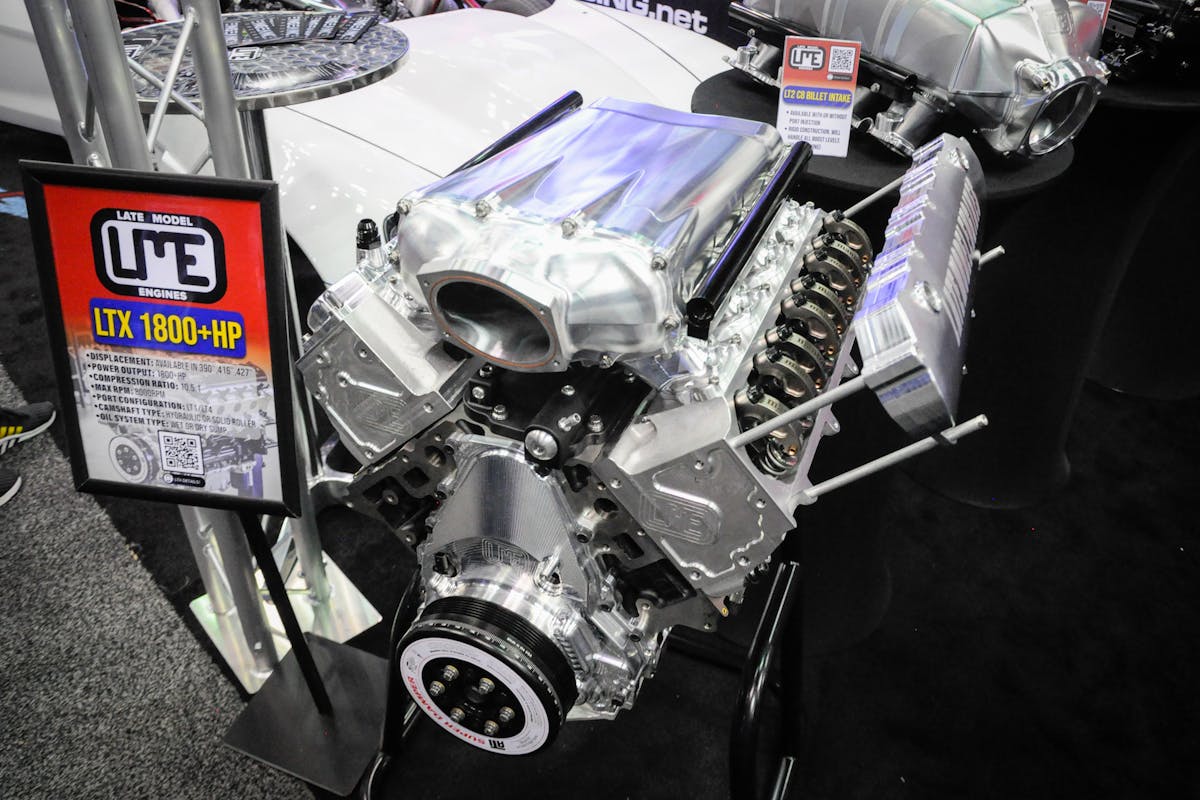 “This is our LTX 1,800 horsepower combination. It is available in 390, 416, and 427 cubic inches,” said LME’s Bryan Neelen. “It utilizes the new GM L8T 6.6-liter iron block and runs our Edelbrock-based casting that we machine from the raw casting to the finished product.”