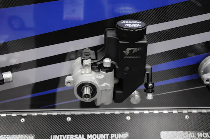 Since pressure output can be heavily influenced by wide, ultra-grippy tires, the power steering system is going to need to exert an immense amount of pressure. This is where the top-end HP2 Pump from Turn One Steering comes into play, with a higher-pressure capacity output being the most notable difference between it and the HP1 unit.