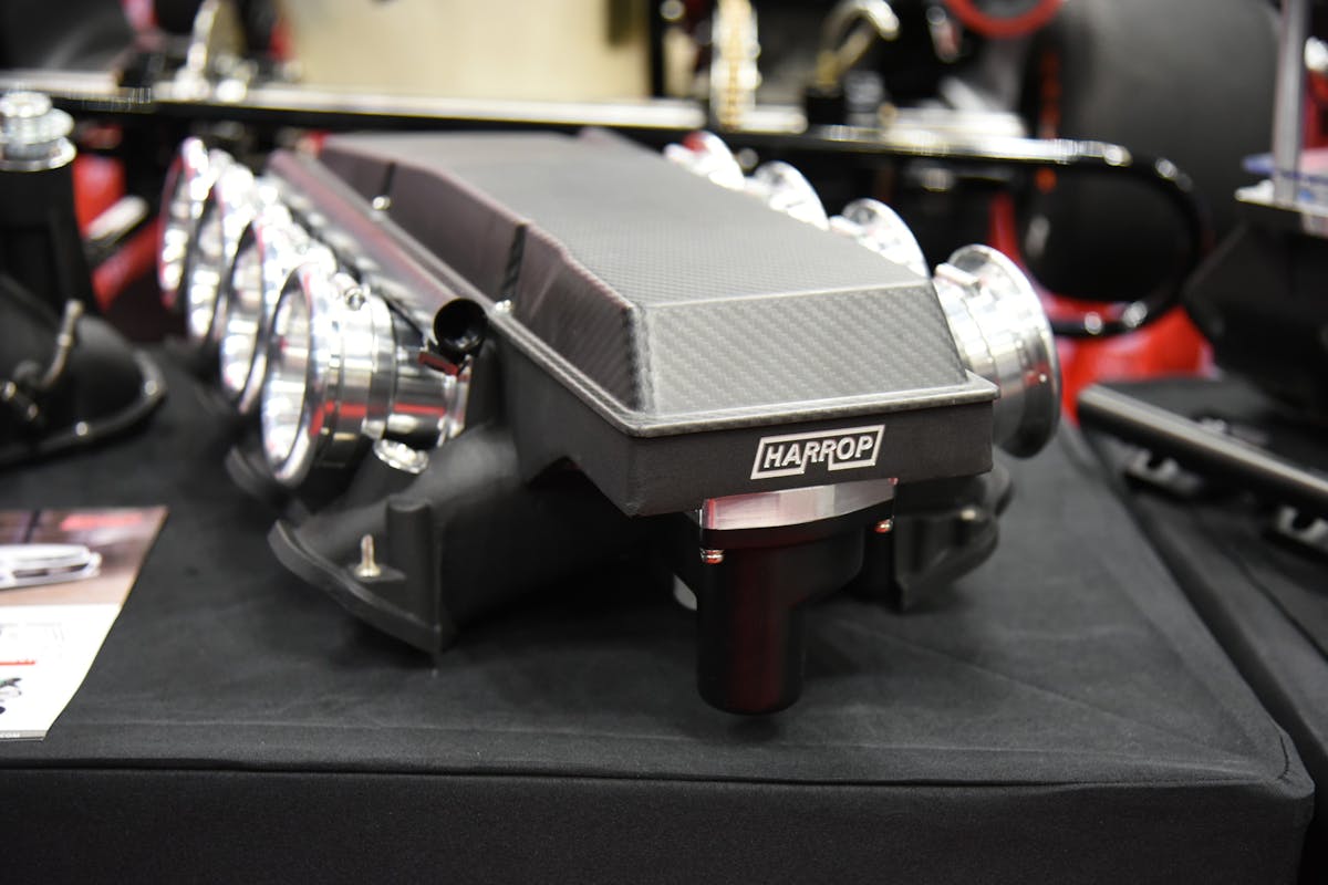Harrop has done a fantastic job of building a great reputation for its roots-style superchargers, but the Hurricane ITB intake is the thing that caught our attention at the PRI show. Expertly crafted by the engineering team, this intake looks like it’s just begging to be run at wide-open throttle. From the eight individual throttle body trumpets milled from aluminum to the carbon fiber lid that hides the throttle linkage, the Hurricane intake is a work of art as much as it is a high-performance part.