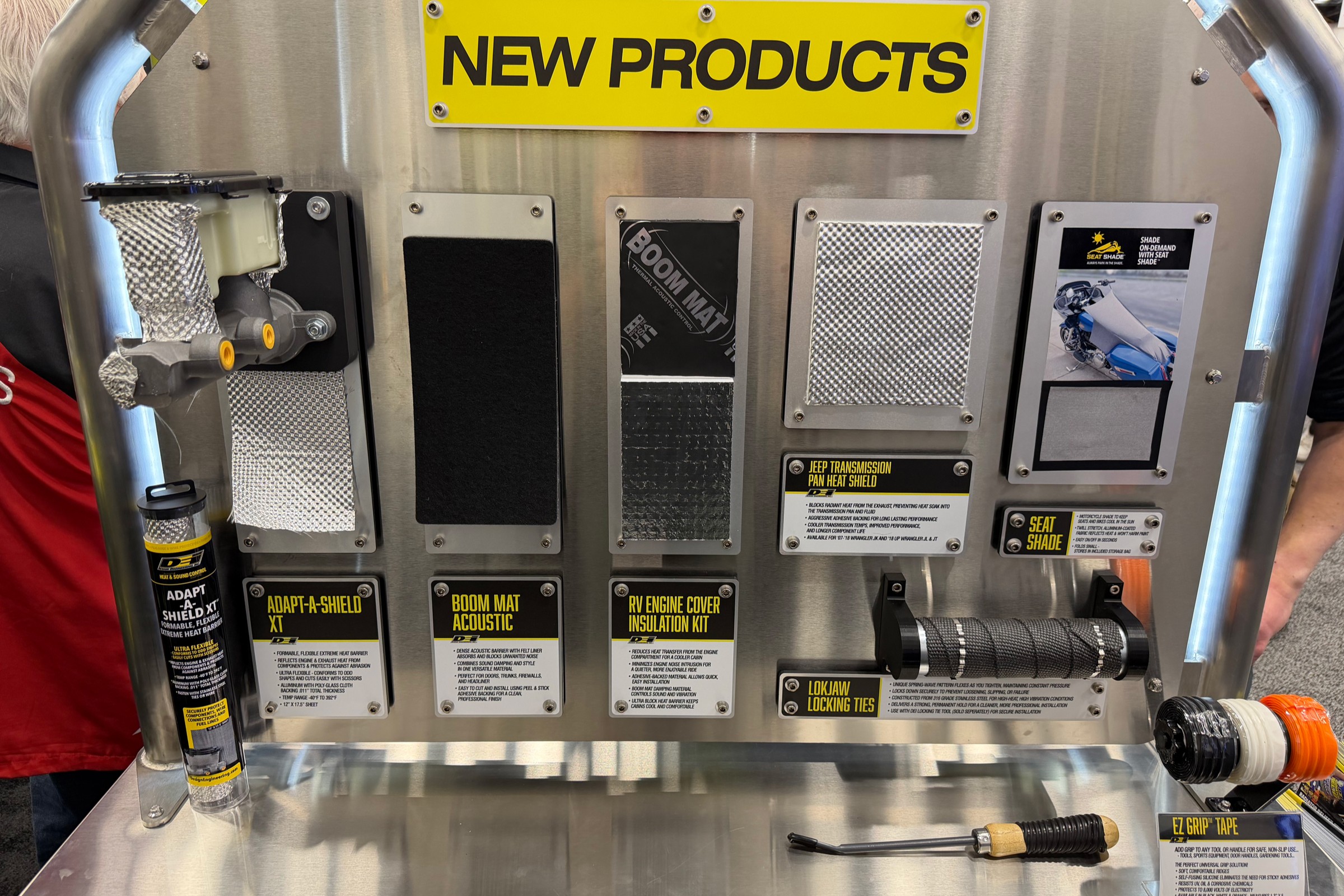 They also showed off the new Boom Mat Acoustic Felt, which provides heat and sound insulation with a finished felt top layer—perfect for drag-and-drive interiors where you want protection but don’t want to install a full custom upholstery job. From transmission pan shields to specialized engine covers, DEI’s 2025 lineup is all about practical, easy-to-use solutions that keep the heat out and the noise down.