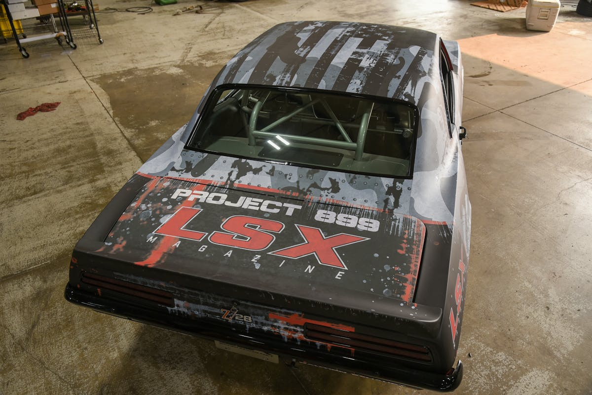 We knew that to help increase our chances of accomplishing the goals we laid out, Project 899 needed to start with a strong foundation. This meant using a rolling chassis that was free of rust and did not need any repairs or improvements to the body or interior. The 1969 Camaro we chose is just such an animal. The body and frame are straight and rust-free, and it already has an 8.50-certified cage in it. We wanted to make 899 stand out, so we called on Scotty Bollinger at Wrapped By SB in Twinsburg, Ohio, and he knocked it out of the park with the design and his application of the wrap.