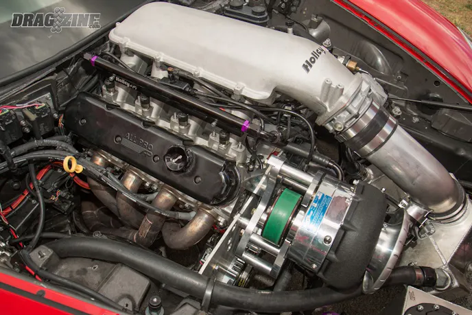 What makes this Corvette put up the big numbers is the forced induction system that Fran chose to implement on the car. A multi-class legal F-1C 94 ProCharger sends boost through the A&A Corvette supercharger system, and Fran used an Innovators West Harmonic Dampener to help spin the ProCharger. That’s right, no crank or gear drive unit here.