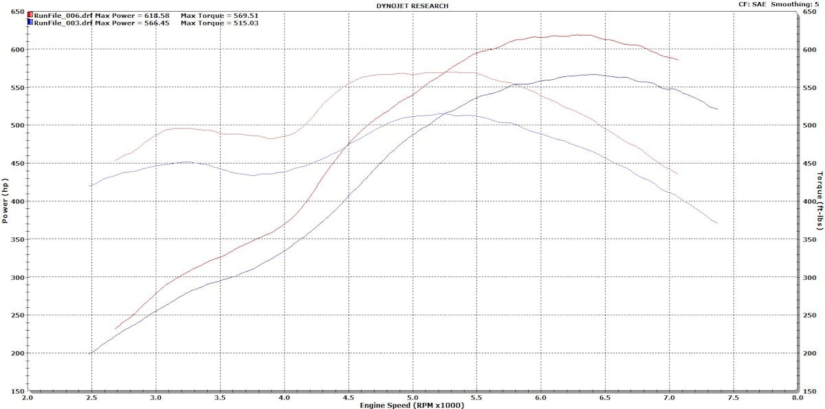 HP/TQ: 618 rwhp / 569 lb-ft of torque