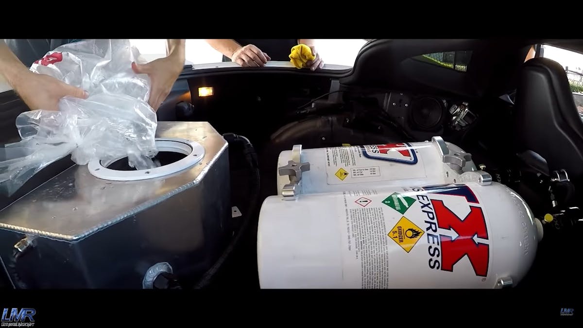 Supercharging and nitrous are both tested ways of building horsepower, but when you’re going with this much power, a mixture of both can be just the right recipe. Starting off, the F-1X Procharger puts out about 23 pounds of intercooler-assisted boost into the engine. From there, a shot of nitrous also helps to cool the intake charge while providing more power-enabling oxygen to the mix. In the video, Steven Fereday, owner of LMR, states that he thinks the car will go 7.90s with blower only, but, they “don’t want to wait. So, they’re putting nitrous in it, and we’re gonna send it!”