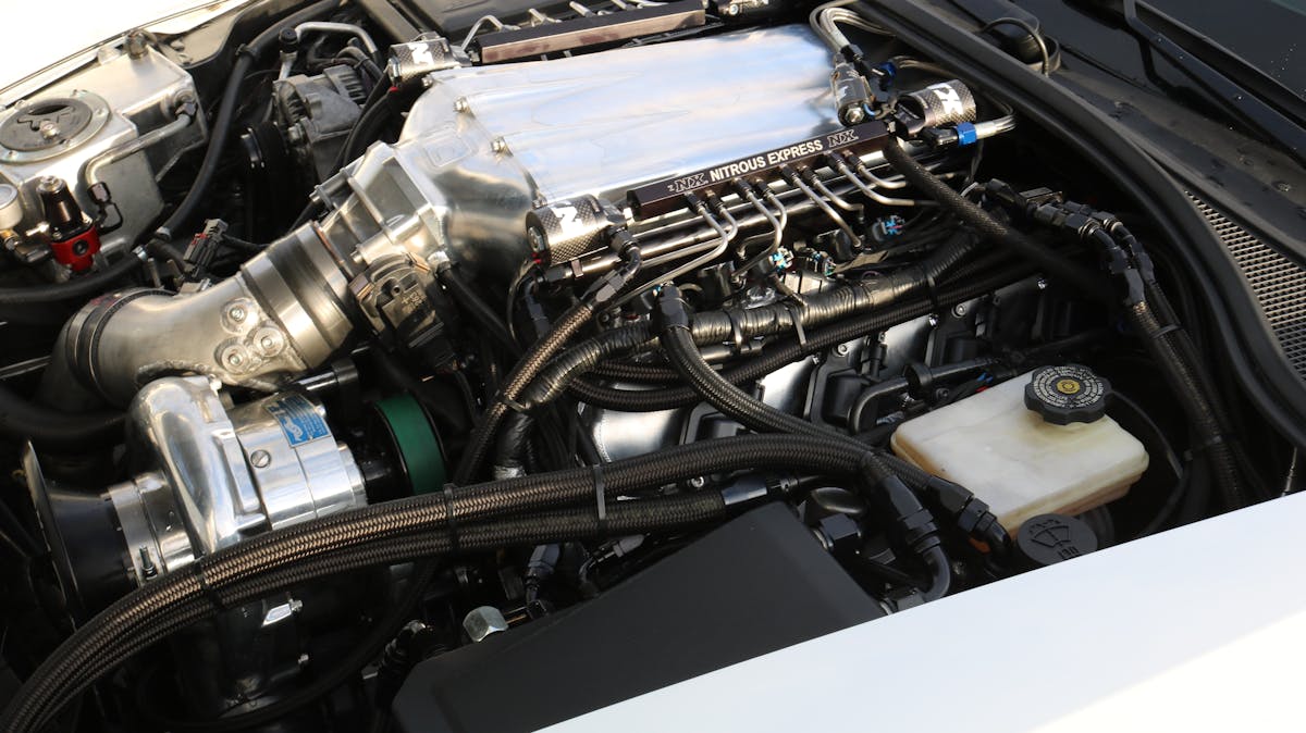Supplying the necessary C85 fuel to feed all those horses is thanks to the factory direct injection system and, an auxiliary port-fueling assembly that also provides fuel for the nitrous system. At that point, the folks at LMR fine-tuned the factory ECU to trim the fuel flow to match the additional boost as well as train the computer to work nicely with the new Powerglide transmission.