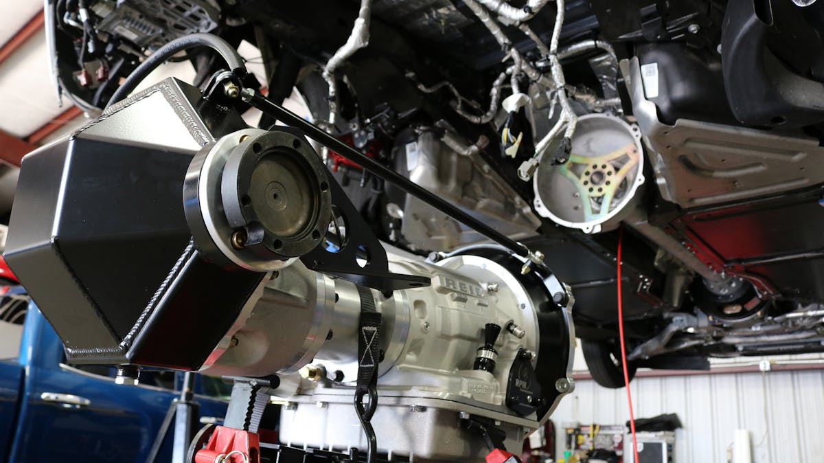 The factory 8L90-E 8-speed automatic transmission was dumped for a super-beefy RPM Transmissions two-speed Powerglide driven by a ProTorque 4,000 rpm stall converter. Beyond that, a trusty 9-inch differential gives all that torque a 90-degree turn to each of the Drive Shaft Shop shafts which power those Mickey Thompson 275/60/15 Pro tires on Weld Racing wheels. As you watch the video of the car’s launch, you’ll see that building such a bulletproof drivetrain was a necessity. To keep the sixty-foot times in check, a set of Menscer Motorsports coilovers control the weight transfer.
