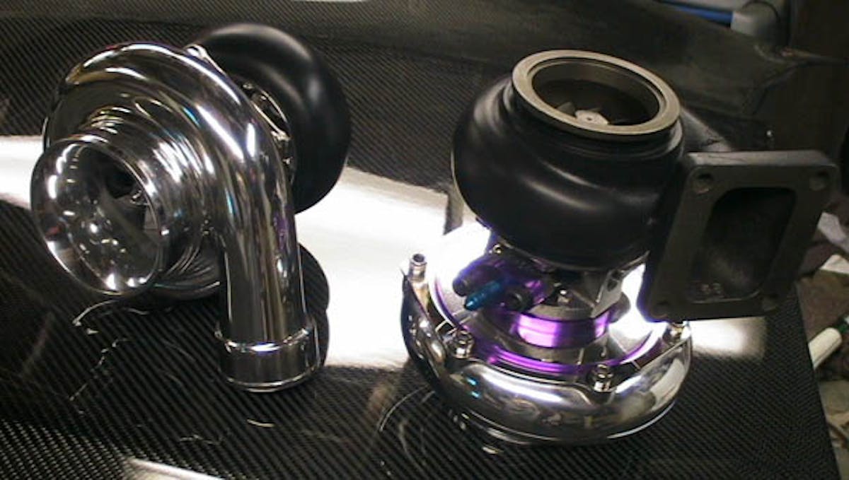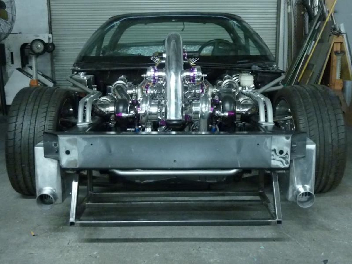 As if these performance modifications weren’t enough, Oyler equipped the engine with a Meziere Race LS1 electric water pump, twin 60-1 turbochargers with a polished Garret compressor and custom 6061 billet backplate, a Turbonetics water cooled journal center with 360 bearing kit, Turbonetics .70 T4 Undivided Turbine, P Trim housing, and a three-inch V-band.