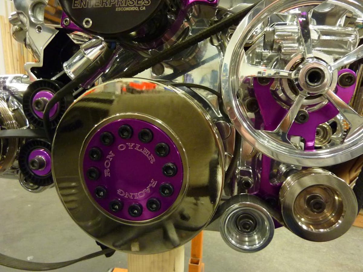 The electronic automatic transmission was also equipped with a wide 2 5/8-inch Alto carbon fiber 2-4 band, rollerized reverse input drum, billet forward piston, Jet Billet fourth gear servo, Jet Billet Powr-Flo servo, 300M shafts and a Yank 3600 stall converter.