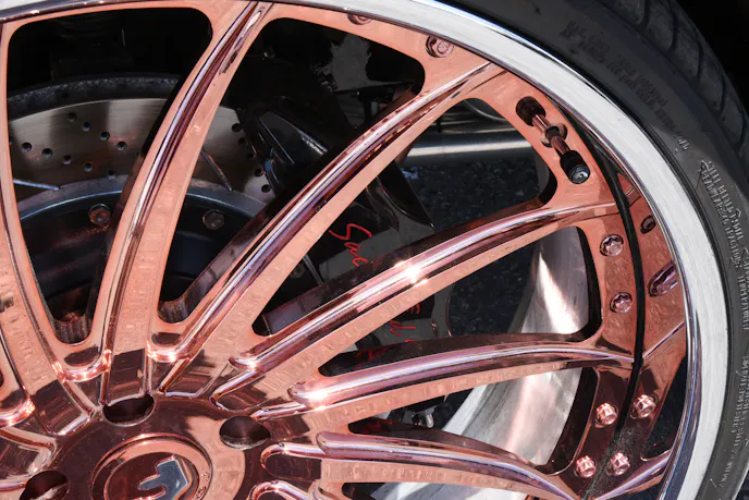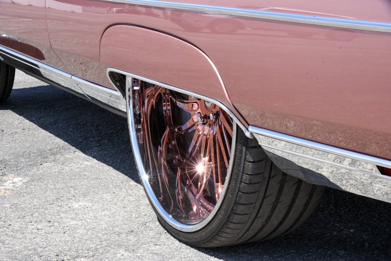 To start, the Caprice was stripped down to its bare frame, where it was cleaned up, and any unnecessary tabs or brackets were removed before it was coated with Rose Gold paint while the underside of the body was sprayed with black Cerakote. To prepare the car for its 26-inch diameter wheels, a complete QA1 big wheel suspension package was installed with new upper and lower control arms in the front, along with coilovers at each corner. The rear received a narrowed fabricated Moser Engineering 9-inch rearend to hand the four-digit horsepower this Caprice makes and allow the rear wheels to tuck nicely into the fender well. Once the chassis was reassembled, the body could be re-mounted before heading over to Alex’s friend, Jay, where it was worked over to be laser straight before being coated in its beautiful custom Rose Gold hue. Additionally, every piece of trim was straightened, smoothed, and coated in fresh chrome before being reinstalled on the Caprice.