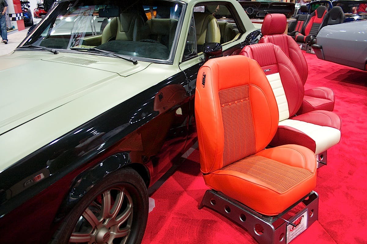 “We have new rear quarter panels for Mustangs and everything for the first-gen Camaros: dashboards, quarter panels, door panels, headliners, seats, rear sport seats, and all of our new stuff tied into one package.”
