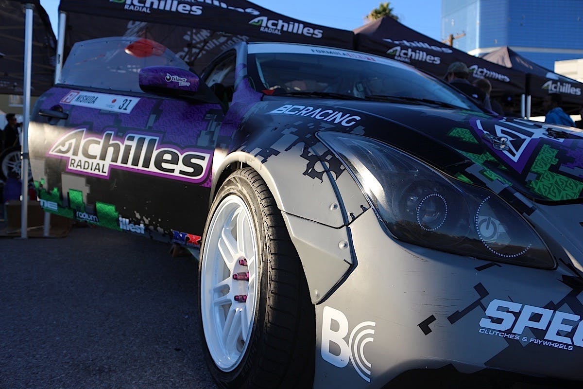 The selection of drift cars was on display for the public to approach and examine. These stripped-out and tightly-strung machines varied from domestic V8s to Japanese high-strung power. All of the vehicles looked well-seasoned rather than show-kept.