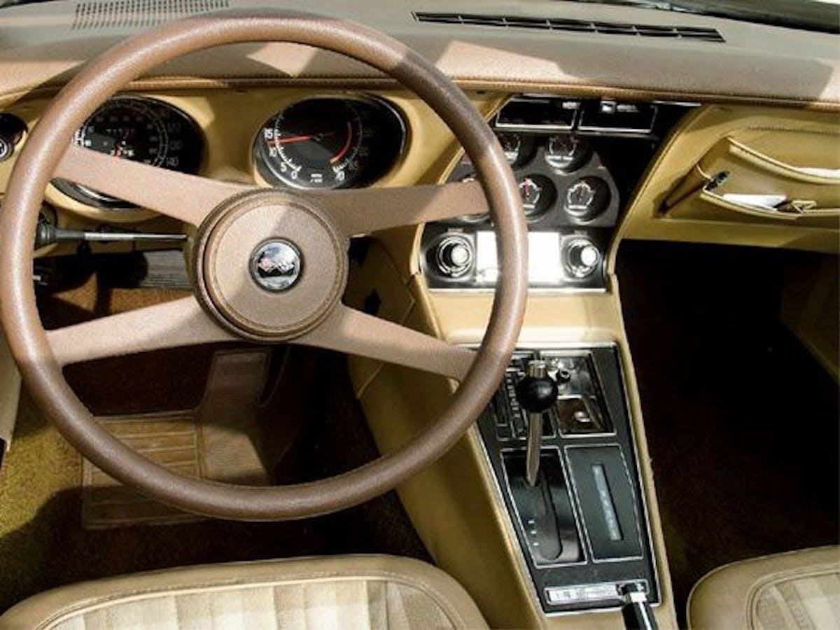 What really grabbed us, though, was the absolutely killer version of the classic (yet somewhat reviled) Chevy four-spoke steering wheel. It became well known on Vegas and Camaros in the early ’70s and there wasn’t much commotion until it showed up on the 1976 Corvette and then all hell broke loose.