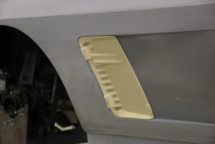 Meanwhile, the body needed a lot of work and received a new front fiberglas clip as well as rear roof section and valance. After the basics were squared away, they installed a mini-tub floor that the Roadster Shop happens to offer for sale to builders as well.