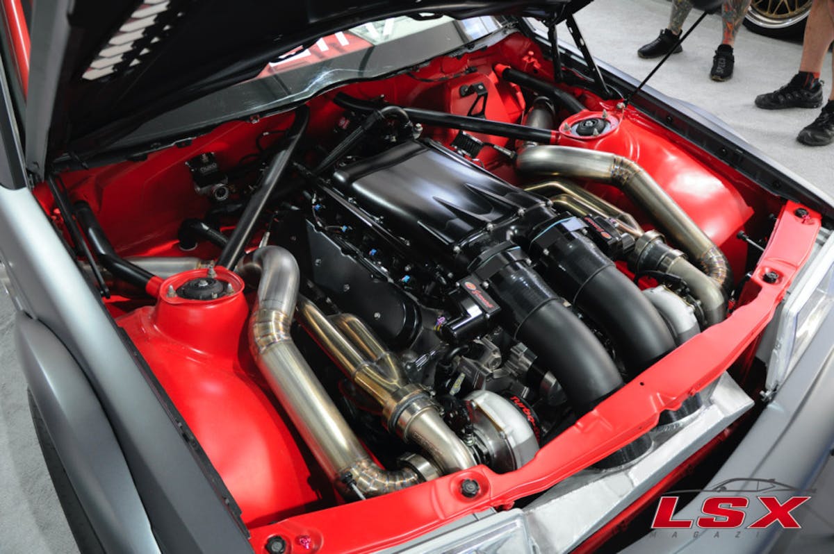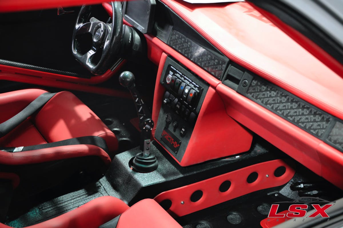 For the engine, A Texas Speed and Performace LS3 408 cubic-inch stroker was utilized in conjunction with a Late Model Engines (LME) intake with dual throttle bodies and twin Precision Turbos. On low boost, the combination makes 700 horsepower, but 1,000 is no problem when needed. When asked why he opted for an LS, Tim said, “I’m a big Mercedes fan and I was planning on putting a V12 in the car. The problem is, the power numbers I was trying to produce versus the cost of building, the V12 didn’t make sense. The LS is tough to beat when it comes to power and performance. My pockets aren’t bottomless, so the LS is perfect. I’ve pissed off a lot of people with this car, but by now, they are starting to get it. You see guys like Cleetus McFarland banging out 100 to 150 passes with no problem, and it’s very understandable of why the LS is so popular.”