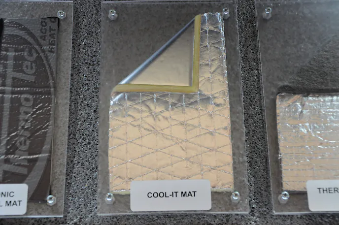 According to Nick Helms at Cool It Thermo-Tec, “The Suppressor Heat and Sound Mat are the most popular choice because it reduces the sound and offers radiant heat control.” This product is excellent for firewalls, floorboards, and can be used for the doors as well. If you need a little more protection you can lay the Thermo-Guard on top of the Heat and Sound Mat by using the heavy-duty spray adhesive. This will offer additional coverage, and the high-tech foil barrier will block more than 90% of radiant heat while providing the best sound insulation possible.