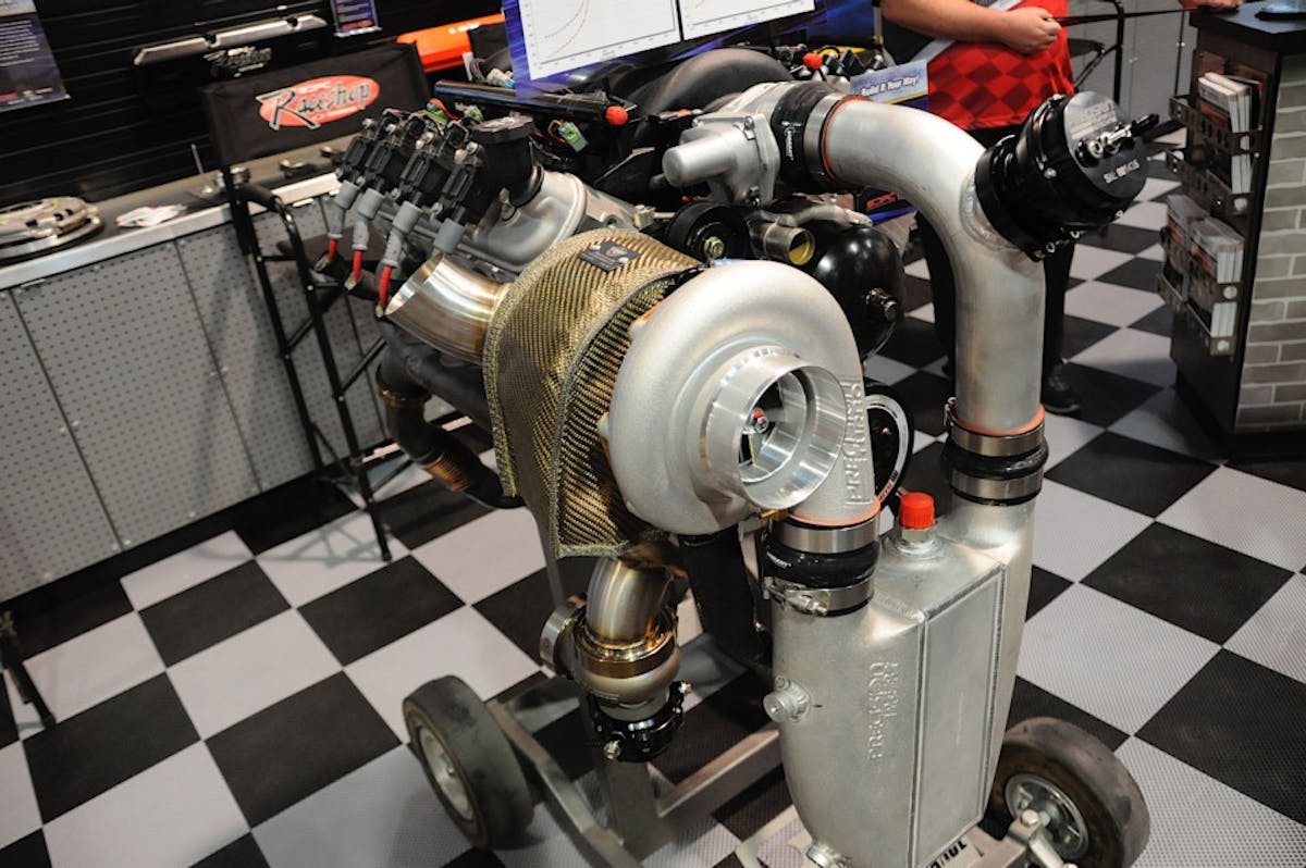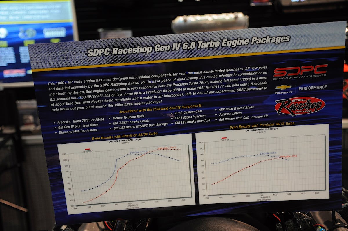 The SDPC turbo 6.0 starts off with a GM Gen IV iron block and GM crank that’s mated with a set of Molnar H-beam rods and utilizes a set of Diamond flat-top forged pistons. ARP head and main studs are used throughout the build to make sure this combination is super reliable. The heads consist of factory LS3 castings that use a set of SDPC dual springs and GM rockers with a CHE trunnion kit. Slap on a GM LS3 intake manifold, FAST 85-pound injectors, Hooker turbo manifolds, and your choice of a Precision 76/75 or an 88/84 turbo and you have a very dependable setup that is capable of making over 1,000 horsepower and 1,000 lb-ft of torque on gasoline.