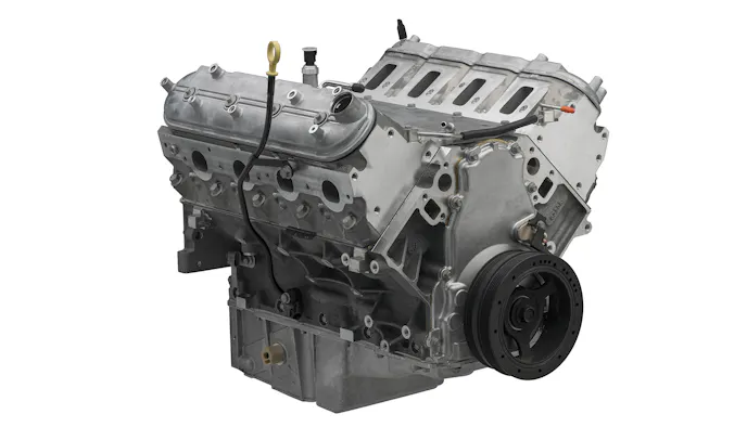 The LS427 offers a larger camshaft than the iconic Z06 and Z28 packages and cranks out an impressive 570 horsepower. The manufacturer’s suggested retail price for the wet sump LS427 is $15,993 and includes the intake manifold, fuel injectors, coil packs, plug wires, drive-by-wire throttle body, fuel rail, and injectors. You will need to purchase an engine control system and harness available from your Chevrolet Performance dealer.