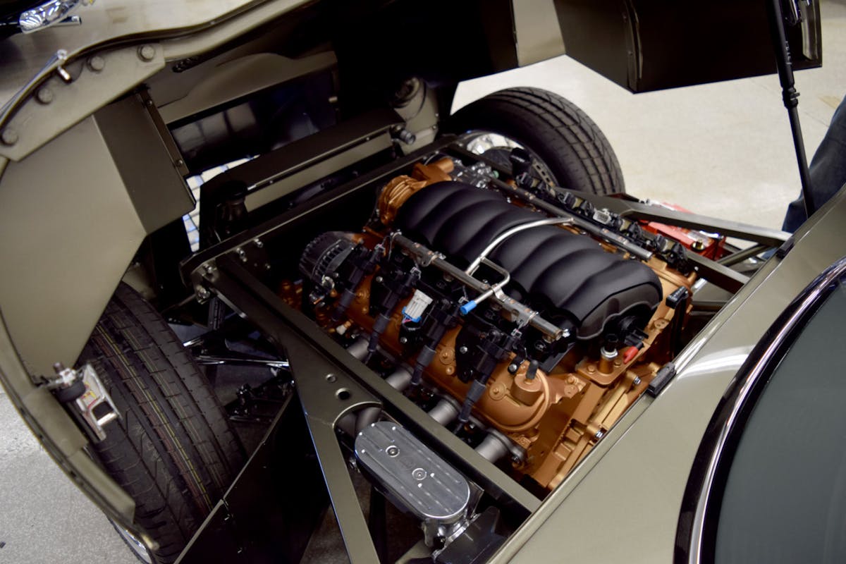 According to autoblog.com, the build took over 2.5 years to build, and nothing was left untouched. And while the car was displayed at SEMA last year, we never got a peek under the hood because the team had yet to finish it up. This year, however, we know that the original 272 horsepower 5.3-liter V12 was ditched in favor of a 525 horsepower 6.2-liter LS mated to a four-speed automatic transmission. Another significant change is that the convertible top was ditched, making the Jag a roadster.
