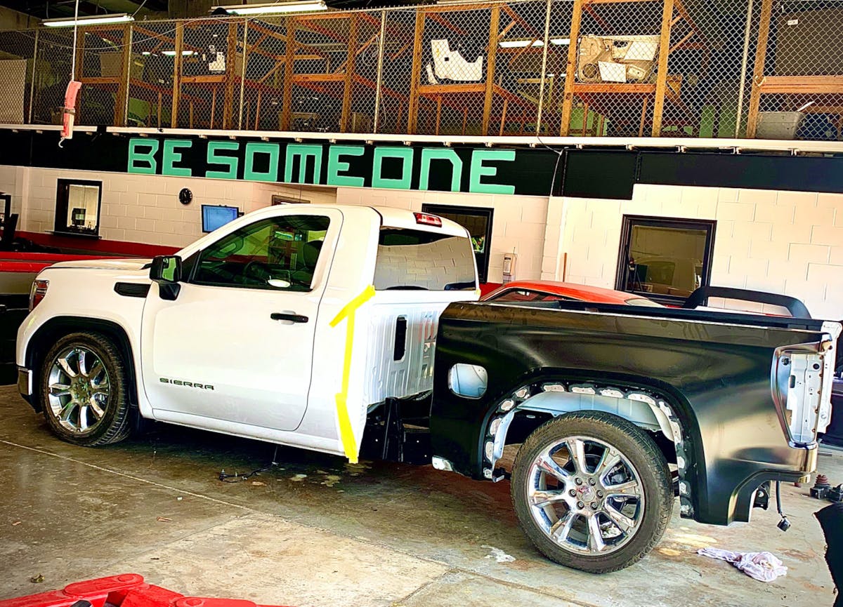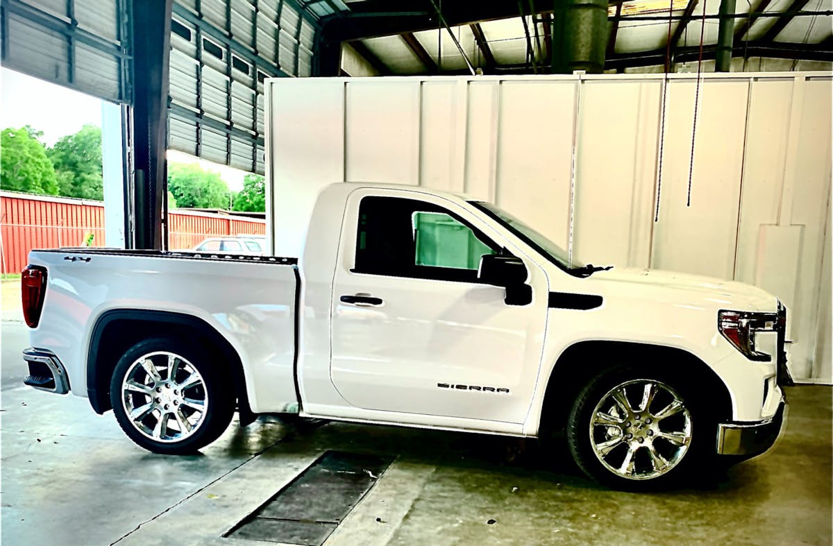 Ibarra started working at a paint and collision shop at the age of 15. He has always been passionate about paint and body, and when he saw that GM was not going to build any single cab short bed trucks, he decided to create his own. Ibarra and crew started with a 2020 GMC long-bed truck powered by a Gen V 5.3-liter LT engine. And while most people purchase new vehicles for the warranty, that wasn’t the case here. Ibarra said, “We voided the warranty right after the purchase.”