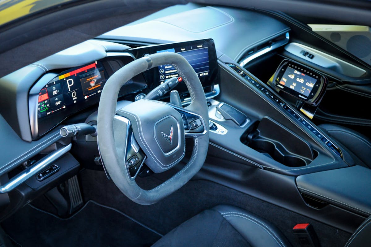 Fitting a supercharger on the LT2 may sound like a simple task, but that was not the case. Roshan and his team worked on the system, custom accessory bracket, and jackshaft for months before they were happy with the product. They also decided on a cog drive versus a regular ribbed belt. The advantage here is the belt will never slip, and you get the aggressive whine of superchargers back in the day. They also put the heat exchanger behind the air duct on the driver’s side, which helped retain the car’s OEM appearance.