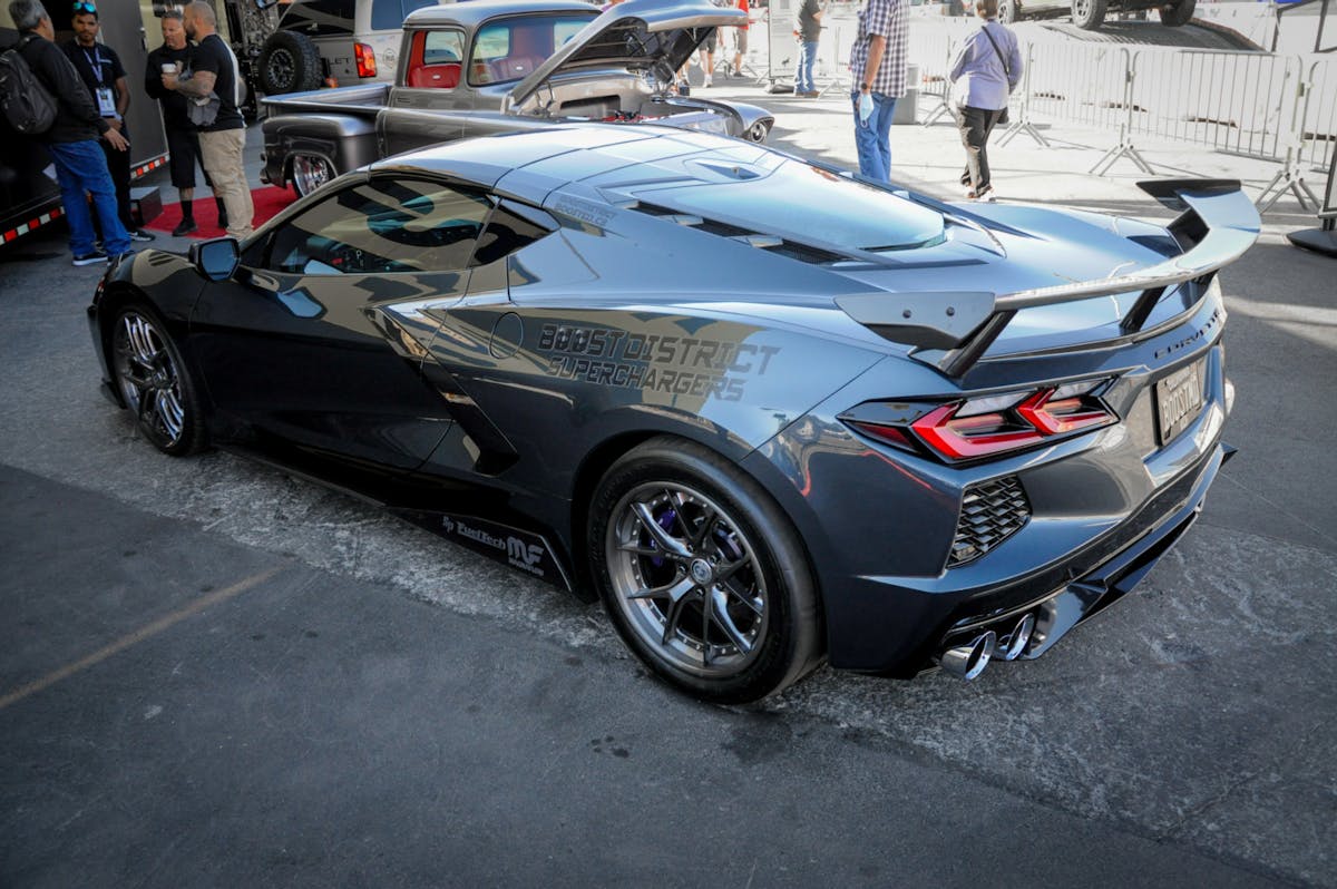 The Boost District supercharged C8 makes 700 horsepower at the wheels with only 7-pounds of boost on 91 octane. Although, after the show, Roshan told us they intended to make a pulley swap, upping the boost and switching the fuel over to e85 for more power. When asked how the Corvette drives, Roshan said, “This setup responds just like a stock C8 until you put your foot in it, and then it comes to life as it makes peak torque at 2,300 RPM.” Currently, Roshan is working on pricing for the C8 supercharger system and plans to resolve it before the end of the year.