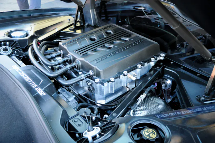 An optional FuelTech FT600 is shown in this picture mounted off the center console which works flawlessly with the C8 factory ECU. This device allows customers to add a second set of fuel injectors for additional fueling with the OEM direct injection.