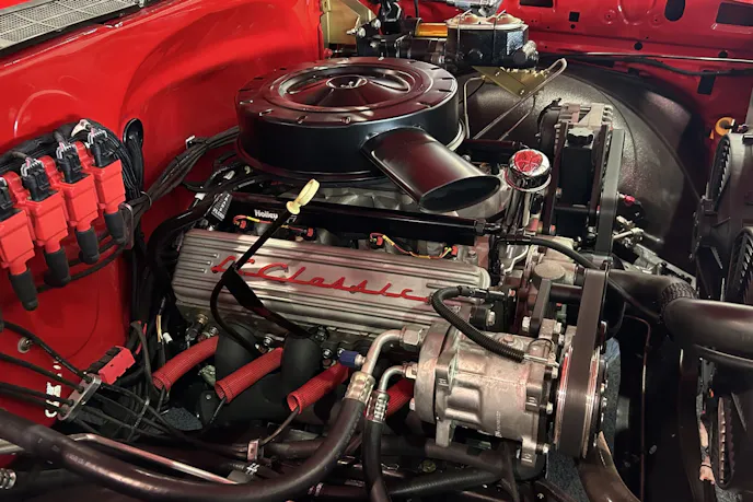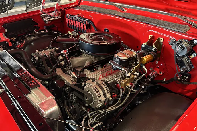 What started life as a rusty $2,500 project truck has turned into this Ferrari-red beauty. Originally, this short wheelbase single-cab half-ton came with a 250 cubic-inch straight six that had an output of 100 horsepower and 175 pound-feet of torque. Not that it matters anymore, as that tired workhorse was long gone by the time its latest owner got ahold of it. The fenders, doors, and bedsides were covered in small dents and dings from work duty and the cab corners were rusted through like all old C10s.