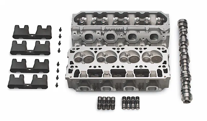 The kit consists of the hot cam, CNC-ported cylinder heads, four lifter trays, and eight lifers, which put the kibosh on your Active Fuel Management and variable valve timing—but in our opinion is very, very worth it; especially if your main focus is on performance and not fuel economy.