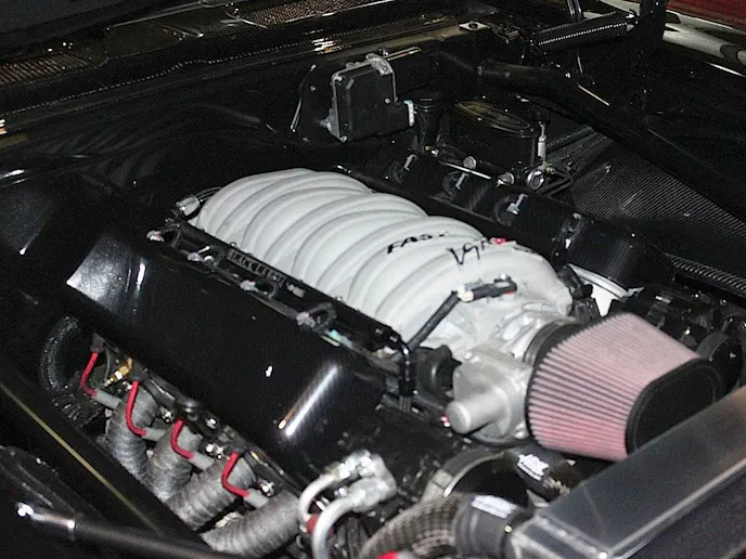 It features an Edelbrock supercharged LS3, a 6-speed manual transmission, 4-wheel ABS brakes with a traction control system, and other modern luxuries and conveniences like remote keyless entry, remote start, and even daytime running lights.