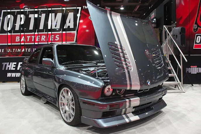 We spotted this BMW in front of the Optima Batteries booth on our first day of SEMA. Owned by Kevin Byrd of Two Guys Garage, this car pretty much speaks for itself.